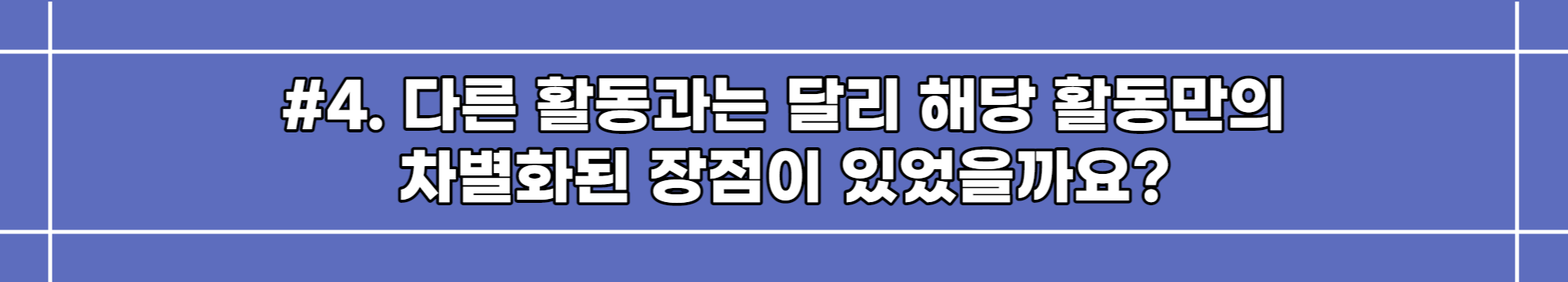 이렇게 크게 네 가지 분야에 대해 들어보았는데요. 구독자분들이 각자의 성향과 앞으로의 계획에 맞추어 알맞은 활동들을 진행하시길 진심으로 기원합니다! 감사합니다.