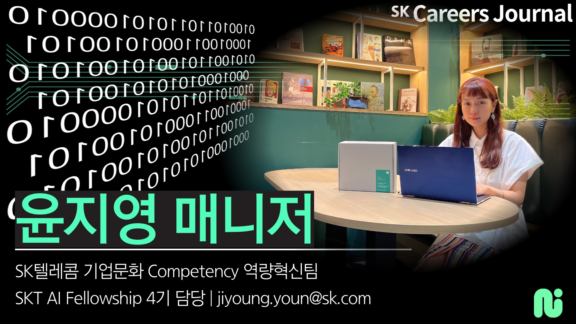 윤지영님(AI SKT AI Fellowship 담당자): 안녕하세요 김우희님과 같이 대학, SK관계사, 타기업과의 기술 교류 및 협력 프로그램을 담당하고 있는 역량혁신팀 윤지영입니다. 말씀드린 업무들이 ‘HRD’라 했을 때 쉽게 떠올려지는 전통적인 교육과는 조금 다르다고 생각하실 수 있을 텐데요, 기업이 보유한 기술 역량을 외부와 교류하고 미래의 AI 인재들을 양성하는 데에 도움을 드리는 것 또한 기업 HRD 담당자의 역할이라고 생각합니다. 바로 그 중 한 가지가 올해로 4기를 맞이한 SKT AI Fellowship 입니다.