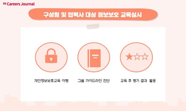또한 전 구성원과 협력사를 대상으로 정보보호 교육을 진행하고 있으며 정보보호인식 함양을 목적으로 연 1회 온라인 교육 프로그램들을 진행하고 있습니다.