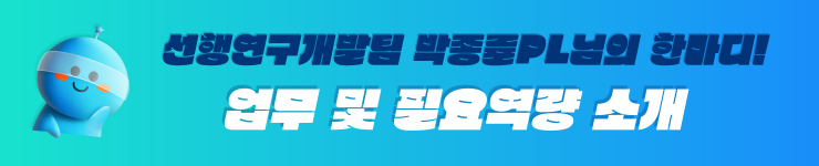박종률 PL님 : 다른 직무 또한 배움의 자세와 끈기는 필요하지만, 특히 연구 직무는 새로운 것에 도전하다 보면 다양한 실패를 경험하게 됩니다. 그럴 때마다 더 많은 지식을 얻고자 노력하고 이를 통해 끈기 있게 시도하는 것이 연구 직무라고 생각합니다.