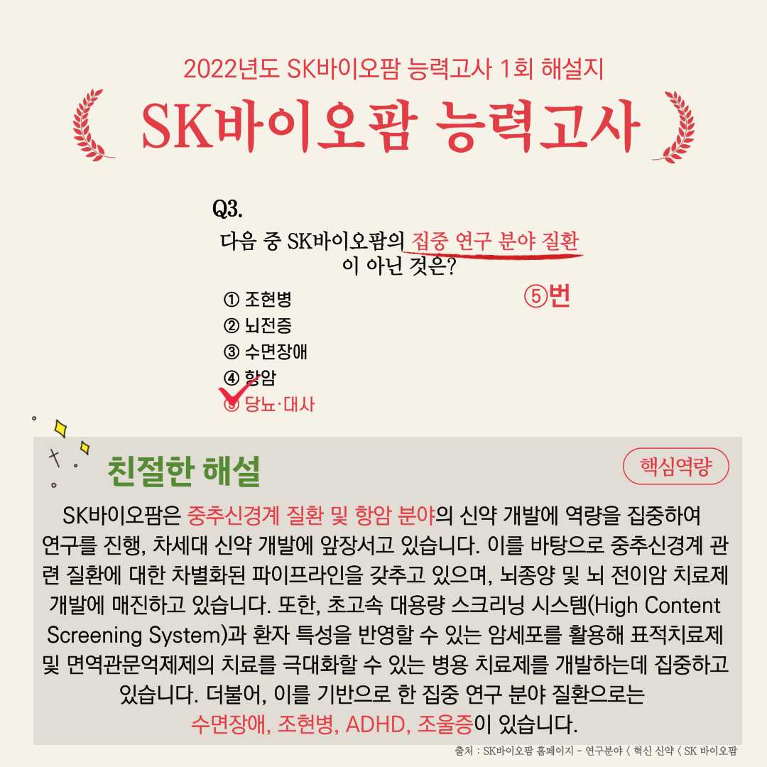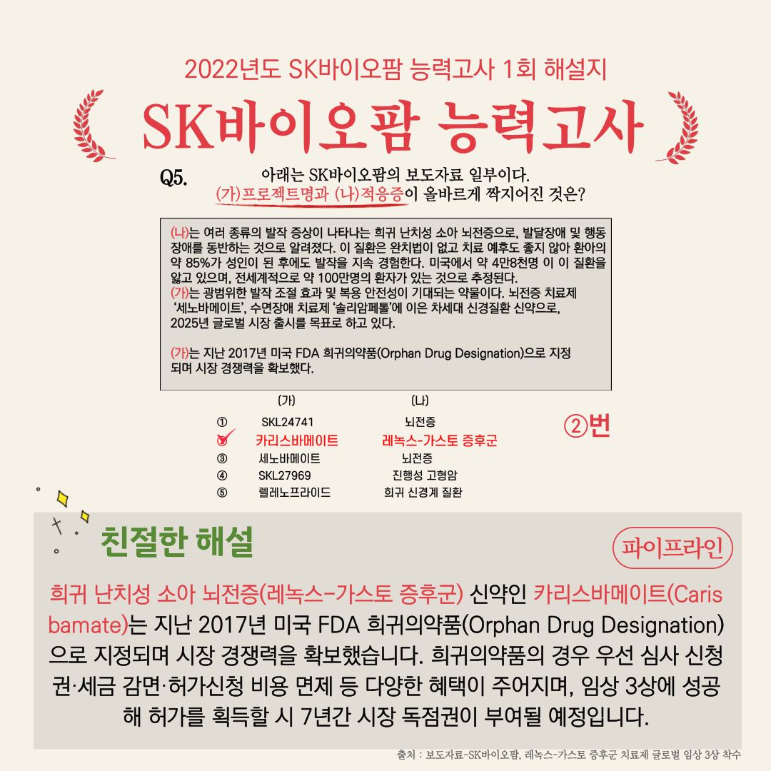 SK바이오팜, 어디까지 알고있니? | 2022년도 SK바이오팜 능력고사 1회