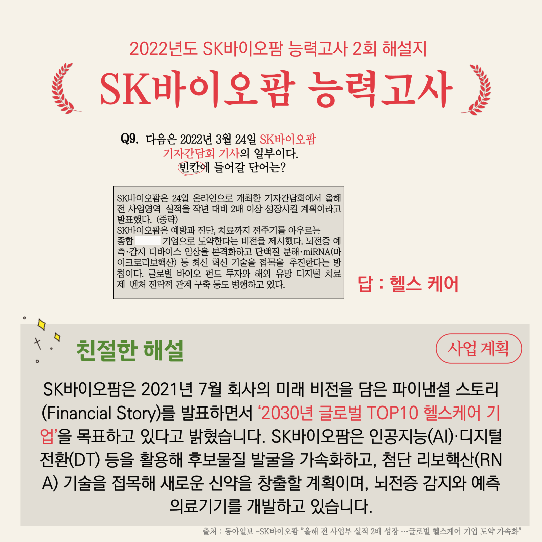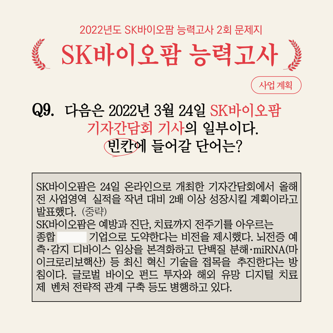 SK바이오팜, 어디까지 알고있니? | 2022년도 SK바이오팜 능력고사 2회
