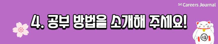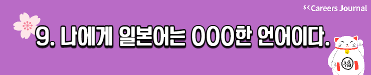 세 분의 각기 다른 일본어 공부법, 자세히 알게 되셨나요? 이번 글을 읽으신 분들 모두 원하는 제2외국어 공부 성공적으로 해 나가시길 응원합니다! 또 일본어를 마침 공부하려 하셨던 분들은 본 글을 읽고 다양한 꿀팁을 얻어 나가셨으면 좋겠네요😊 지금까지 SK Careers Editor 김희은이었습니다. 감사합니다.