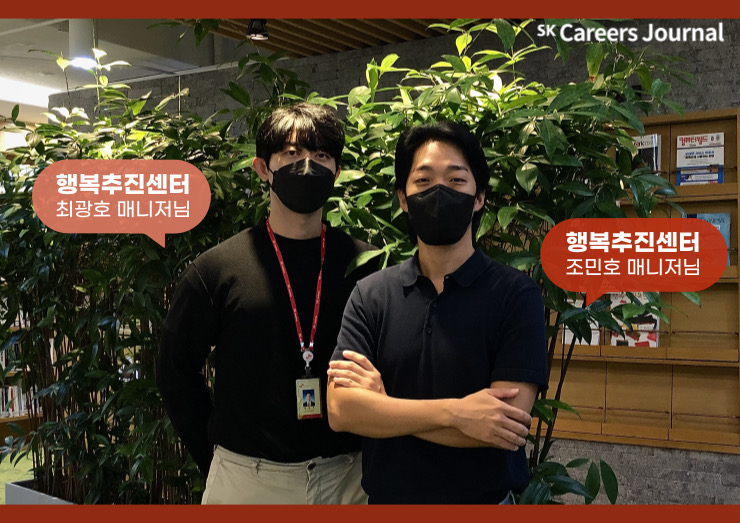 전사 구성원의 참여로 수립된, 뭐 좀 되는 SK(주) C&C의 조직문화! SK(주) C&C 행복추진센터의 조민호 매니저님, 최광호 매니저님과 한번 톺아보도록 하겠습니다🔎