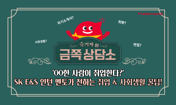 곧 SK 관계사들의 상반기 채용이 시작된다는 소식이 들려오는데요! 다들 잘 준비하고 계신가요~? 아직 취준이 어려운 금쪽이들을 위해 SK E&S에서 ‘인턴 멘토’를 담당하고 계시는 Renewables개발팀 최기철 매니저님을 모시고 취준과 사회생활에 대한 여러 이야기를 나눠봤습니다. ヾ(•ω•`)o