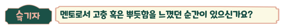 멘티는 이제 막 사회생활을 처음 해보는 인턴이다 보니, 제가 가르쳐주는 회사생활이 멘티에게 큰 영향을 끼칠 수도 있겠다는 생각이 들어 약간 부담이 있었고, 멘티에게는 입사를 결정할 중요한 시기이기에 항상 부족한 것은 없을지 걱정되었습니다. 그럼에도 저와 선배들의 꾸준한 지도 하에 멘티가 점점 Business man으로서의 역량을 갖추는 것을 보며, 짧은 인턴기간이지만 그동안 멘티에게 도움이 될 수 있는 영향력을 끼칠 수 있다는 것이 뿌듯하고 좋았습니다.