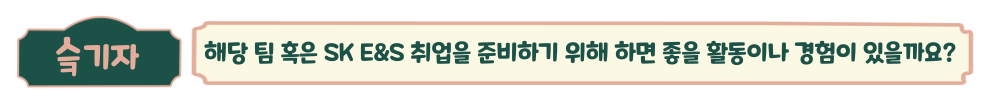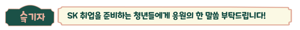이렇게 멘토님의 마음도, 취준생의 꿀팁도 얻을 수 있는 인터뷰였는데요! (단순 스펙 쌓기, 멈춰!!) 바쁘신 와중에도 인터뷰를 응해 주신 최기철 매니저님께 다시 한번 감사의 말씀을 전하며 곧 시작될 SK E&S 채용과 저의 다음 기사도 많은 관심 부탁드립니다! 감사합니다. 🙌