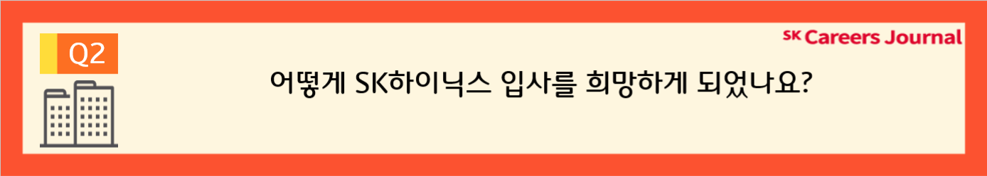 안녕하세요! 오늘은 지난 2022년 상반기 SK하이닉스 신입사원 수시 채용의 최종 합격하신 따끈따끈한 SK하이닉스 신입사원 두 분과 인터뷰 진행한 내용을 공유하고자 합니다. 한창 회사에 적응하느라 노력하고 계실 두 분과 함께한 인터뷰! 지금부터 함께보시죠.