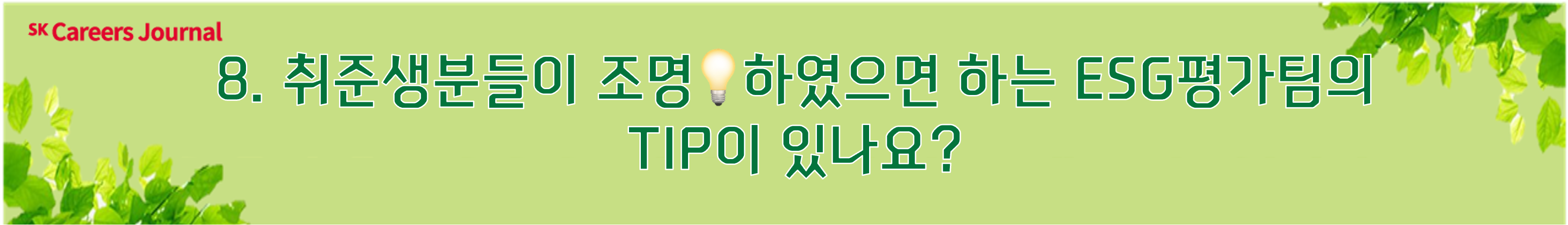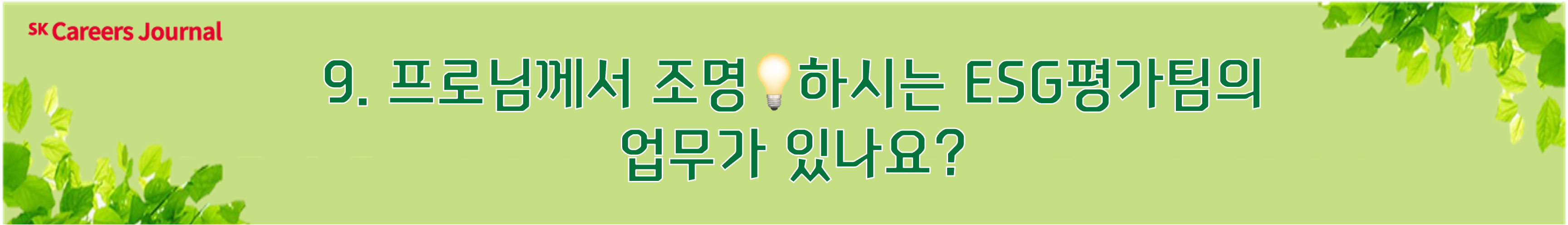 ESG평가팀의 실무 이야기부터 취준생 여러분들을 위한 조언까지! 오직 [슼포트라이트💡]에서만 공개되는 꿀팁들이 궁금하지 않으신가요? 그럼, 프로님을 만나러 함께 가보시죠!