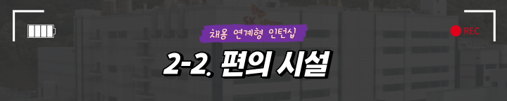 다음으로, 예상했던 것보다 회사의 규모가 매우 컸으며 증설 또한 진행되고 있기 때문에 앞으로 개인의 역량을 발휘하고 성장하기에 좋은 기업이라고 생각했습니다. 복지동인 ‘행복동’ 또한 최근에 지어졌기 때문에 시설이 깨끗하고 밥이 맛있었으며, 다양한 편의시설이 잘 마련되어 있어 좋았습니다. 지역의 특성상 문화생활을 자주 즐기기 어렵고 교통이 조금 불편하다는 점을 제외하고는 전반적으로 생활하기에 매우 편리했습니다.