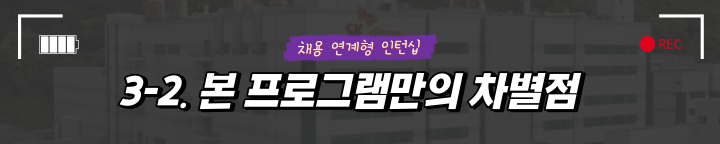 첫 번째로, 채용 연계형이라는 점입니다. 이번 인턴십의 경우, SK실트론에서는 명확한 채용 전환율을 정해 놓지 않아 내부적으로 세운 최소한의 기준에만 충족한다면 모두에게 채용의 기회를 제공하고자 하였습니다. 따라서 요즘 같이 취업난이 극심한 상황에서 참가자 본인의 열정과 의지만 있다면 취업 문이 넓어지는 기회를 얻을 수 있습니다.