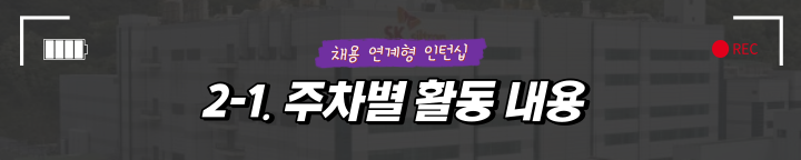 이번 인턴십 프로그램은 채용 연계형이면서 동시에 체험형 콘셉트로 진행되어 참가자들이 주 단위로 다른 직무를 경험하고 그 안에서 선배 사원들과 함께 과제를 수행하며 학습하는 방식으로 진행되었습니다. 요일 별 구체적 활동 내용은 다음과 같습니다.