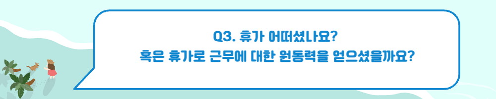 별 다섯 개가 만점이라면 별 10개 정도의 휴가였습니다. 모든 직장인들이 그렇겠지만 휴가야말로 고된 일상을 잠시 잊고 다시 나아갈 기운을 회복할 수 있는 원동력이라고 생각합니다. 회사를 비운 기간동안에도 제 업무의 공백이 크게 느껴지지 않을 만큼 도와주신 동료 구성원들께 감사한 마음 뿐이에요.