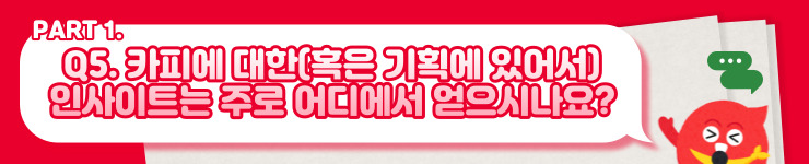 결국은 공부하는 것인데요, 세 가지로 나눠 말씀드릴 수 있겠습니다. 첫 번째는 회사 내부의 자료입니다. 회사의 경영계획, 대표이사의 신년사, 회사 매체와의 경영층 인터뷰 등에 회사의 아이덴티티가 담겨 있습니다. 핵심 키워드들과 방향을 도출할 수 있는 가장 좋은 소스이죠. 두 번째는 회사 외부의 자료들입니다. 수많은 책들과 광고들이 도처에 놓여있습니다. 상점에 붙어 있는 슬로건도 학습의 도구가 될 수 있죠. 수많은 외부 자료 중 놓치지 말 것 하나만 꼽으라면 소비자들의 여론 트렌드 관련 자료들입니다. 마지막으로 세 번째는 사람입니다. 사람과의 일상적인 만남과 대화를 통해 많은 것을 느끼고 배우게 되죠.