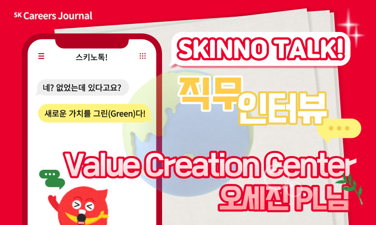 WOW~ SK이노베이션 계열의 ‘카본 투 그린(Carbon to green) 전략’을 트렌디한 카피 하나로 정리해 버리신 담당자님 안 만나볼 수 없겠죠? Value Creation Center의 오세진 PL님 모시고 기업PR 캠페인 직무에 대한 이야기 그리고 취준을 위한 서류/면접 꿀팁까지 알차게 준비해보았습니다! 띠링~ 스키노톡💬 지금 바로 톡하러 가시죠~😆