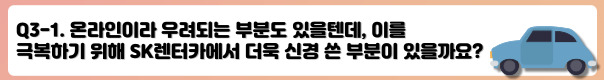오상열 매니저님: 보통 자동차가 고비용이다 보니 고객 분들이 대면을 선호하십니다. 그러나 코로나 사태가 오면서 대면이 부담스러워 하시는 분들이 늘어나고 있습니다. 그래서 SK렌터카 Direct 플랫폼은 코로나로 인한 대면 계약의 불안감을 해소하고 언제 어디서나 시간과 장소에 상관없이 원하는 차량을 소비자들의 PC/모바일 등 비대면으로 자유롭게 견적부터 계약까지 진행이 전 과정이 가능하다는 장점이 있습니다. (국내 최초^^)