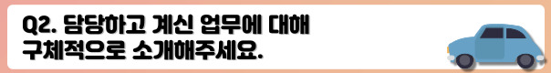 오상열 매니저님: 제가 Direct중고차사업팀에서 하는 업무는 SK렌터카에서 계약 후 중도/만기시 반납되는 차량 중 비대면(Direct) 판매가 가능한 차량을 분류 및 선정하고 신차같이 재상품화 하여 합리적인 가격으로 고객에게 대여 해줌으로써 신차 렌탈에 대한 가격부담 및 중고차에 대한 불안감 등의 고객 Pain Point를 해소해주는 상품을 개발하고 Direct 플랫폼(SK렌터카 다이렉트)으로 판매하는 마케터로서의 업무를 맡고 있습니다. 재고관리부터 시작해서 마케팅까지 일련의 모든 과정을 맡고 있습니다. ^^