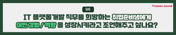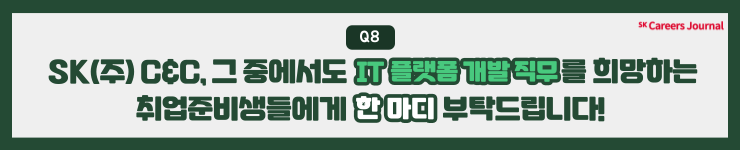 매니저님께서는 C&C의 ESG 플랫폼 이외에도 IT 플랫폼 개발 직무를 희망하는 취준생분들을 위해 진심 어린 조언을 해주셨는데요, 오랜 시간 업계에서 활동해오신 만큼 보다 현실적인 팁을 남겨주신 것 같아요☺️