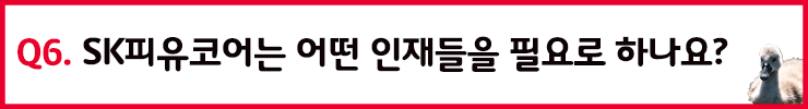 친환경 폴리올 사업, 그리고 고부가 가치 폴리올 시장을 향해 더 큰 발걸음을 내딛기 시작한 SK피유코어의 모습을 엿볼 수 있는 인터뷰였습니다. 이번 채용이 마무리되고, 다음 SKC Family 채용에서 더 멋진 SK피유코어의 소식을 들을 수 있길 바라며, 이렇게 SK피유코어에 대해 자세한 이야기를 들려주신 정왕현 매니저님, 김찬일 매니저님께 다시 한번 감사 인사드립니다. SK피유코어 전형에 참가 중이신 분들도, 다음 채용을 준비하고 계신 분들도 모두 SK피유코어에 대해 더 알아갈 수 있는 시간이 된다면 좋겠습니다. 그러면 다음 기사에서 SKC에 대한 더 알찬 소식으로 돌아오겠습니다. 감사합니다!