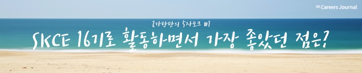그동안 다양한 대외활동을 해왔지만, 활동 내내 좋은 사람들로 가득했던 활동은 많이 없었던 것 같아요. 만나면 항상 즐거운 팀원들, 열정 가득한 16기 CE들, 그리고 취재를 통해 뵈었던 현직자분들 등등… 좋은 에너지를 받는 것에서 그치지 않고 그분들로부터 모티베이션을 얻어가는 것 같아 감사한 마음이 듭니다. SKCE 활동을 통해 좋은 분들을 많이 만날 수 있어서 행복했습니다.