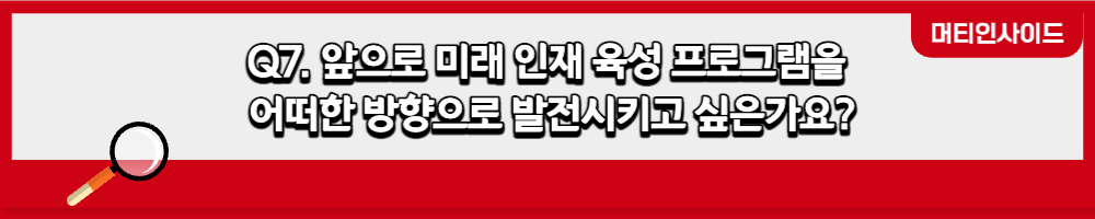 앞으로도 외부에 보여주기 식이 아닌 SK스페셜티만의 고유한 Infra를 활용하여 지속적으로 시행 가능한 미래인재 육성 활동들을 하고 싶습니다. 또한, 단편적이거나 일회성 프로그램을 개발하기 보다는, 기존의 만족도 높은 프로그램에 집중하고 긴 호흡으로 지속적으로 업그레이드하여 참여자들의 만족도와 프로그램 효과성을 극대화 하고 싶습니다.