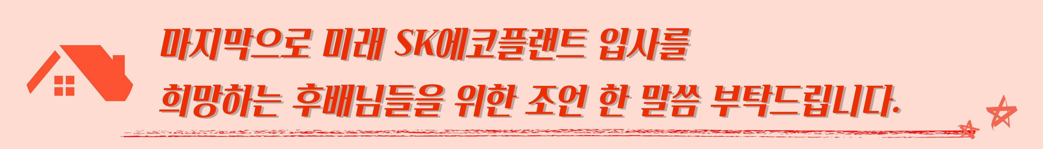 SK에코플랜트는 사명을 변경하고, 환경 기업으로 전환하는 그 변화의 흐름 안에 있습니다. 그래서 저희가 실질적으로는 건축물을 만드는 일을 하지만, 그래도 기업이 추구하고 지향하는 ESG경영을 따라가기 위해 노력하고 있고, 또 회사의 경영 지침들을 보면서 과감하고 멋진 변화들을 시도하고 있다는 것에 대해서 굉장히 공감하거든요. 건설 과정에서 발생할 수 있는 에너지의 저감 정책이라든지 이런 변화를 저희가 정말 많이 고민하고 있기도 해요. 그래서 SK에코플랜트 입사를 희망하시는 분들께서는 ‘주거 환경, 주거 상품이 갖추어야 할’ 환경적인 사명이라든지 에너지에 대한 사명, 그리고 건축 과정에서 생길 수 있는 안전의 문제, ESG경영과 관련돼 있는 여러 가지 이슈들을 더 많이 경험하시고, 이에 대한 생각을 확립하신다면 저희 회사가 바라보는 곳을 조금 더 같이 바라볼 수 있지 않을까 생각합니다. 이를 위해 저도 부단히 노력하고 있고, 그런 눈을 가진 분들을 후배로 꼭 만나 뵙고 싶습니다.