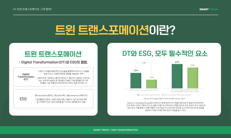 환경과 기업의 발전을 동시에 꾀하는 DT와 ESG 경영의 융합 전략인 트윈 트랜스포메이션, 어떻게 보셨나요?
