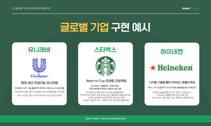 기술을 통해 기업과 사회의 발전을 함께 추구하기 위해 기업들이 어떤 트윈 트랜스포메이션 전략을 펼치는지 지켜봐주세요!