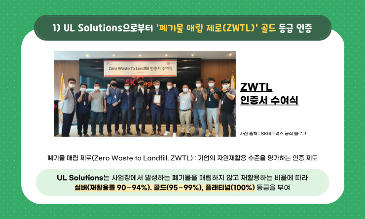 이러한 노력이 모여 SK네트웍스가 폐기물 매립 제로 골드 등급을 받을 수 있었답니다!