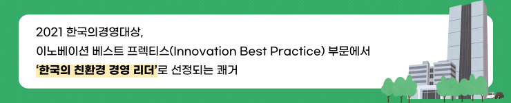 SK매직은 이와 같은 활동을 인정 받아 2021 한국의경영대상, 이노베이션 베스트 프렉티스(Innovation Best Practice) 부문에서 ‘한국의 친환경 경영 리더’로 선정되는 쾌거를 이루기도 했답니다!