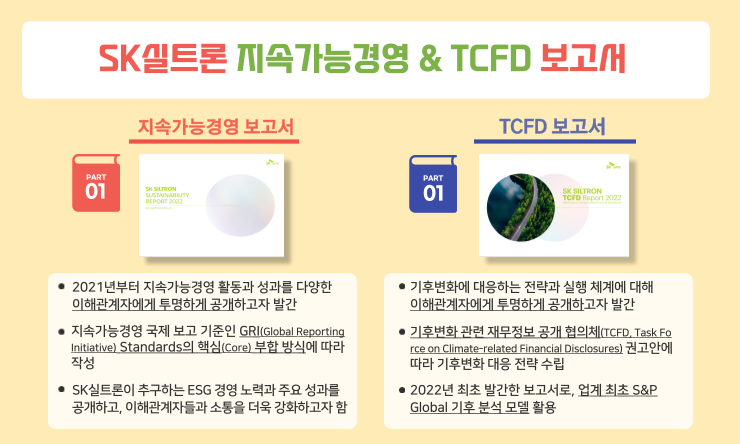 저희 SK실트론의 ESG 경영에 대해 더 많이 알고 싶으신 독자 여러분께서는 SK실트론 지속가능경영 보고서를 읽어주시면 너무나 많은 자랑에 대해서 확인하실 수 있을 것 입니다.