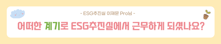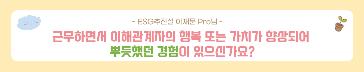 지금까지 그 누구보다 ESG에 진심이신 이재문 Pro님을 만나보았습니다. 여러분들께도 그 열정이 전달되지 않았나요~?