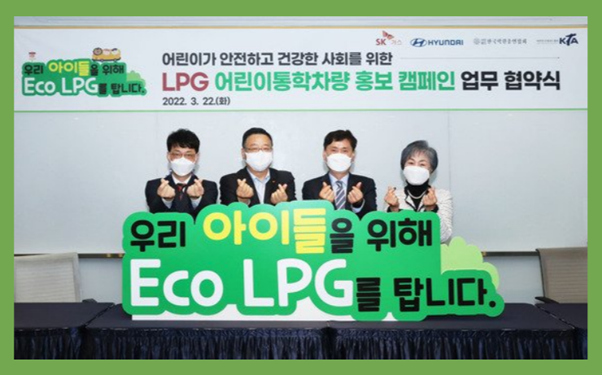 가스 충전소의 대표 주자, SK가스가 그 명성에 걸맞게 친환경 LPG 어린이통학차량 확신 지원에 나섰습니다. 2022년 3월, SK가스는 현대자동차, 사단법인 한국학원총연합회, 대한태권도협회와 함께 LPG 어린이통학차량 활성화를 위한 업무협약식을 열었습니다. 노후한 경유차량은 미세먼지의 주범인 질소산화물을 많이 배출하기 때문에 성인에 비해 호흡량이 2배나 많은 어린이에게 끼치는 영향이 더욱 크다고 합니다. 반면 LPG 어린이통학차량은 질소산화물 배출이 경유의 약 93분의 1에 지나지 않으며, 황산화물도 배출하지 않는 친환경 차량으로, 어린이의 건강한 통학 환경에 크게 이바지할 것으로 보입니다.