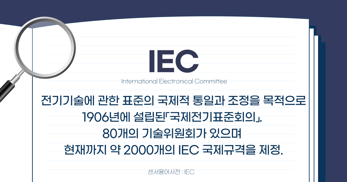 IEC는 전기기술에 관한 표준의 국제적 통일과 조정을 목적으로 1906년에 설립된「국제전기표준회의」입니다. 80개의 기술위원회가 있으며 현재까지 약 2000개의 IEC 국제규격(IECpublication)을 제정했다고 합니다.