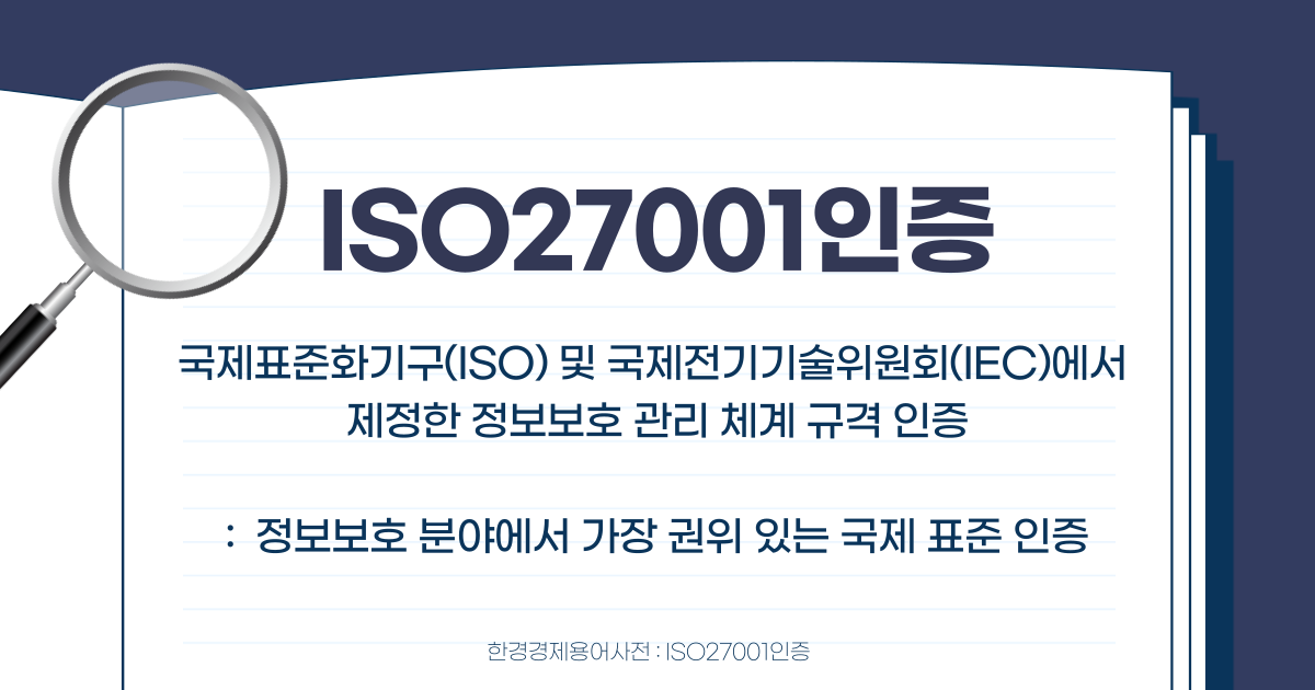 앞서 알아본 두 국제기구가 부여하는 ISO 27001 인증이 있습니다! ISO 27001은 국제표준화기구(ISO) 및 국제전기기술위원회(IEC)에서 제정한 정보보호 관리 체계 규격 인증입니다. 특히나, 정보보호 분야에서 가장 권위 있는 국제 표준 인증으로 정보보호 정책, 공급자 관계, 운영 보안 등 총 14개 분야 144개 세부 항목에 대해 엄격한 심사를 거쳐 검증된 기업만 획득할 수 있습니다. SK스페셜티도 올해 8월 정보보호에 대한 세계 최고 권위 국제 표준 인증인 ISO 27001을 획득했다고 합니다.