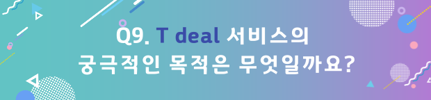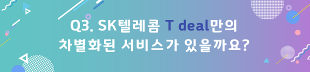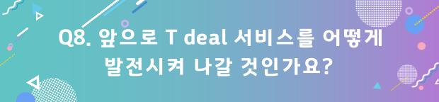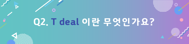 T deal이 지향하는 바는 SK텔레콤 고객에 대한 혜택 강화예요. 비슷한 예로 T 멤버십은 고객들이 ‘SK텔레콤 고객으로서 누리는 혜택’ 으로 인지하시잖아요. 마찬가지로 T deal도 SK텔레콤 고객이기에 누릴 수 있는 차별화 된 혜택으로 인지를 할 수 있게끔 경쟁력을 더욱 강화하려 합니다.