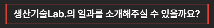 저는 현재 생산기술Lab.에서 일하고 있습니다. 앞서 말씀드렸듯이 자동화 설비 구현을 하거나, 기존 설비에서 개선할 부분을 찾고 있어요.