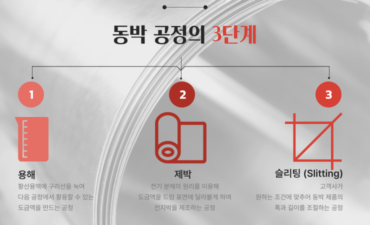 동박 공정은 크게 용해 – 제박 – 슬리팅, 3단계로 구분할 수 있습니다. 그중에도 제박 공정은, 전기 분해의 원리를 이용해 동박의 원재료를 드럼 표면에 얇게 달라붙게 해서 박으로 만드는 과정인데요. 저는 이 제박 공정에 대한 개선을 진행하고 있습니다.