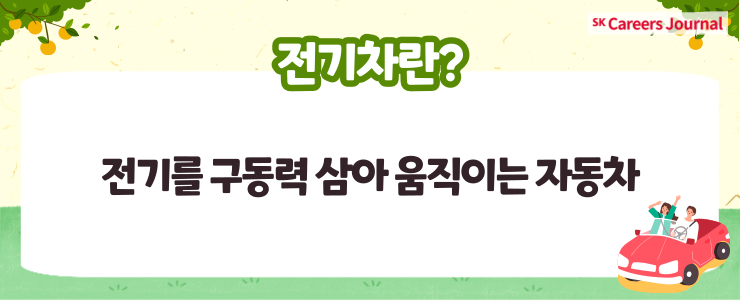 전기차란 전기를 구동력 삼아 움직이는 자동차입니다.