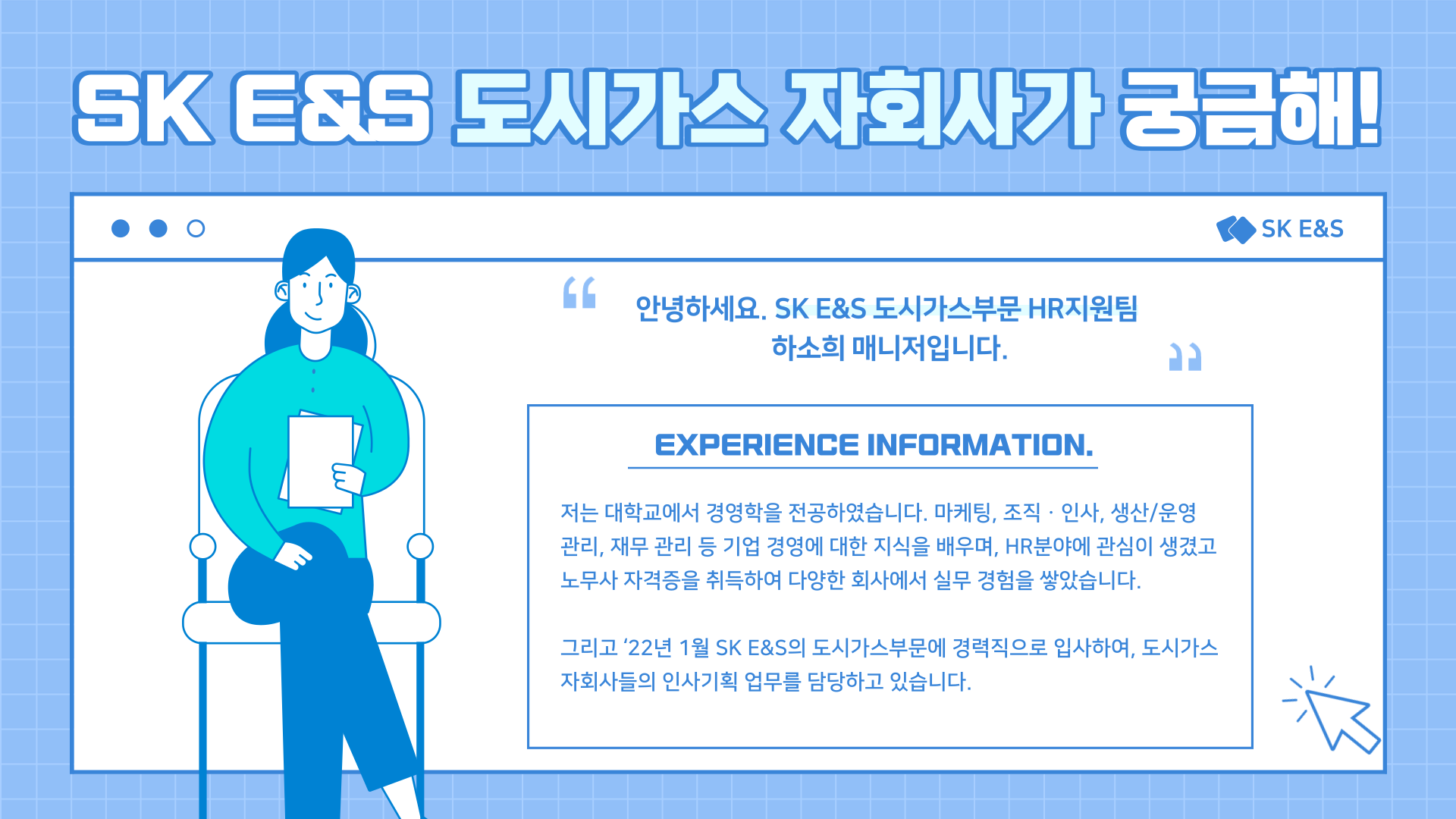 이렇게 도시가스 HR지원팀의 하소희 매니저님과 함께 SK E&S 도시가스 자회사에 대해 알아보았는데요!