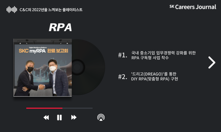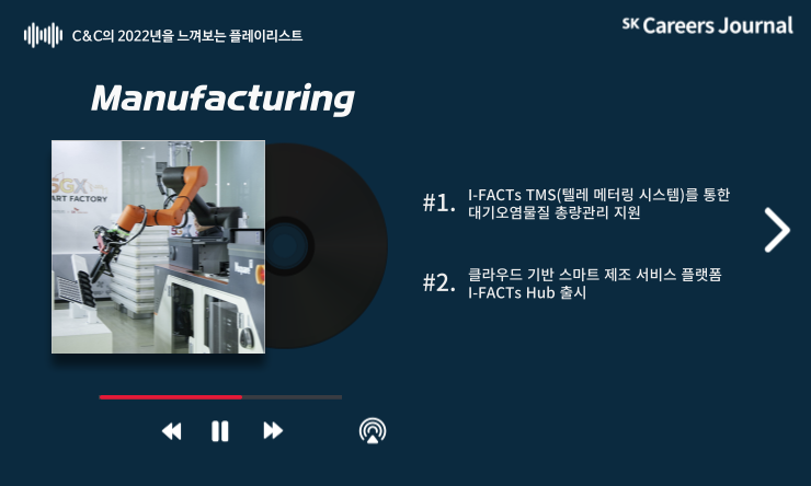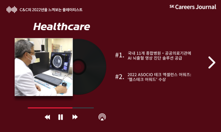 지금까지 RPA, ESG, Manufacturing, 그리고 Healthcare 분야까지, 2022년 한 해 동안 SK(주) C&C의 발자취를 플레이리스트와 함께 살펴보았는데요,