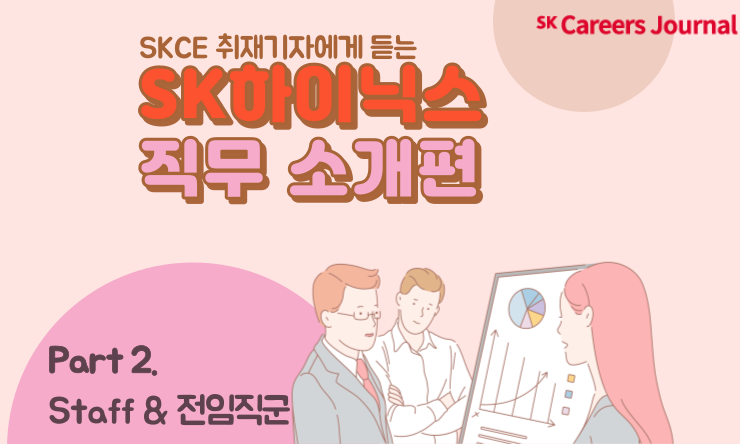 안녕하세요! SK Careers Editor SK하이닉스 취재기자 이수진입니다. 오늘은 SK하이닉스 내의 다양한 직무에 대해 궁금해하실 취준생분들을 위해 지난 SK하이닉스 Engineering 직무 소개 기사글에 이어 Staff와 전임직군 직무를 정리해보았습니다! 직무에 대한 소개와 상세 업무까지 유용한 정보를 가득담은 기사글 보러 가실까요~? 🙌