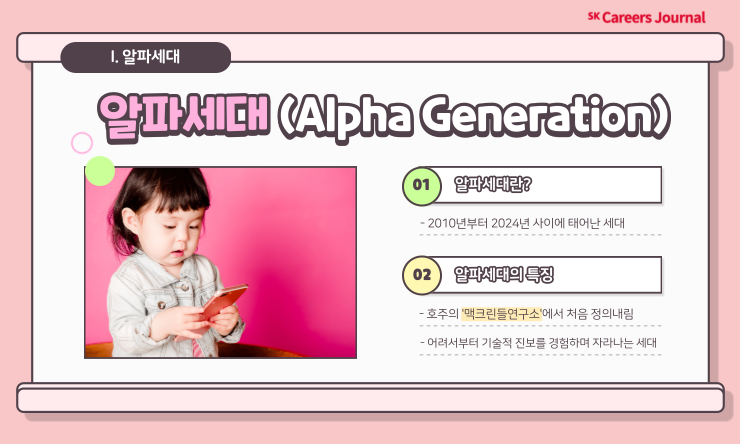 그럼, 현재 각광받고 있는 알파 세대의 개념이 SK그룹의 미래 사업 방향성과 어떻게 연결돼 있는지를 생각하며 기사를 읽어보러 가시죠!