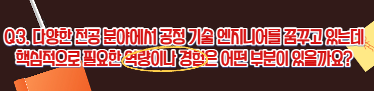 하지만 직접 이번 기회를 통해 매달 담당자 분들의 인터뷰 & 설명을 동반하여 각 직종별로 이해하기 쉽도록 알려 드릴 게요! 그 중에서도 이번에는 공정 기술 엔지니어에 대해 궁금하신 점이 많을 것이 생각하여 야심 차게 준비하였습니다.