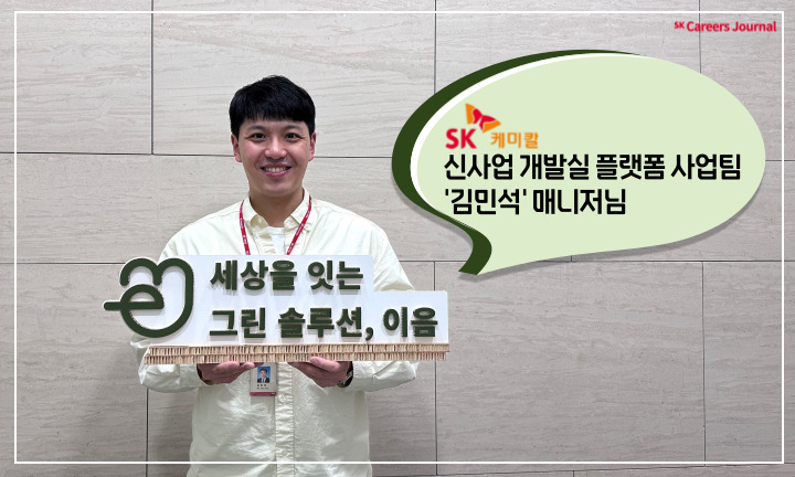 연구원에서 신사업의 기획, 실행까지 직무를 전환하며 ‘플라스틱이라는 소재가 향후 더 많은 발전을 해야 할 필요가 있을까?’ 라는 고민을 하기도 했던 것 같아요. 이미 생활에서 사용할 만큼 높은 기술을 확보했다고 생각했기 때문인 것 같은데요, 이런 플라스틱 산업이 순환 생태계로 전환되며 그 생각이 많이 바뀌게 되었습니다. SK케미칼은 이런 순환생태계 구축을 위해 SPS를 통한 직접적인 해결책을 제안하고 있으며, 지속적인 연구개발을 통해 다양한 고부가가치의 solution을 제공한다는 측면에서 모든 직무에 대해 어느 회사보다도 매력 있다는 생각이 들 수 있을 것 같아요. 그런 면들을 많이 바라보고 지원해서 회사에서 만날 수 있다면 정말 좋을 것 같아요. 특히 이음플랫폼을 운영중인 플랫폼사업팀에 대해서도 현재의 서비스부터 글로벌로 확장될 다양한 비즈니스 모델까지 준비중이니 많은 관심과 함께 지원 부탁드립니다😊