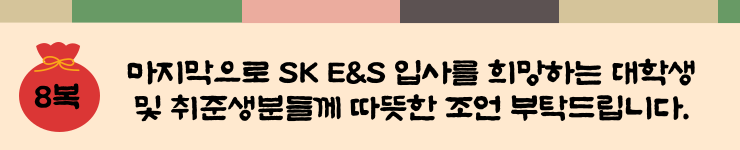 지금까지 SK E&S 김대수 매니저님과 함께 직무와 취업 이야기가 담겨 있는 복주머니를 열어 보았는데요! 기후 변화에 맞서 탄소 배출 저감 활동에 동참하신 모습이 매우 인상 깊었습니다.