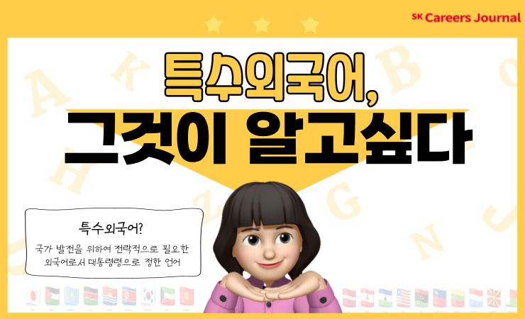 여러분은 외국어를 평소에 얼마나 접하고 계시는가요? 노래, 식당, 길을 가면서까지 우리 곁에서 외국어를 자주 들을 수 있는데요. 하지만 몇몇 특정 언어만 흔히 접할 뿐이죠. 아랍어, 태국어 등 특수외국어에 대해서는 얼마나 알고 계신 가요? 아마 전문가처럼 확실히 알고 있는 사람은 드물 거라는 생각이 드는데요. 그래서! 오늘은 특수외국어에 대해 소개해드리려고 합니다.
