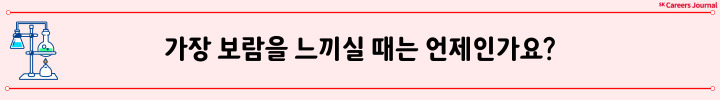 앞서 말씀드린 기술 선별 절차에 따라 최종적으로 연구 개발 혹은 사업화가 진행될 때 가장 보람을 느낍니다. 지금 저희가 당연하게 받아들이고 있는 하버-보슈법과 같은 촉매 공정 기술들도 작은 스케일에서 시작했을텐데 저희가 개발하는 기술도 이름을 남길 수 있다고 생각하면 더 보람을 느끼게 되는 것 같습니다.