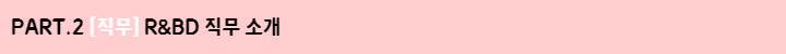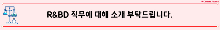 R&BD는 ‘Research & Business Development’의 줄임말로 연구 개발을 할 때 사업화와 연계하여 기술 개발을 하는 직무입니다. 기술 연구 개발을 수행하되 최종적으로는 Scale-up을 통한 사업화의 가능성이 있는 기술들을 다방면으로 검토하고, 연구 초기부터 가능성이 있는 과제들을 선정하여 연구 개발을 추진하고 있습니다.