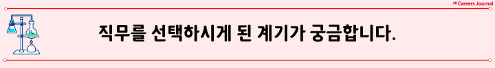 저번 화학공학회 때 대학원생들과 멘토링을 통해 취준생들이 어떠한 고민들을 하는지 알 수 있었는데요. 공통적으로 본인의 연구분야가 회사와 적합한지, 강점이 있는지 고민돼서 지원을 주저하고 있다는 걸 알았습니다. 저는 연구 분야 그 자체보다는 연구를 하면서 성장시킨 문제 해결 방식이 중요하다고 생각합니다.
